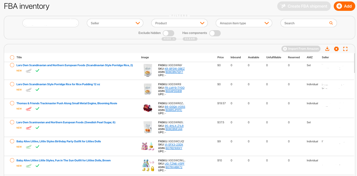 В этом разделе будут размещены все товары, аналогично FBA Inventory в Seller central Amazon.&#x20;