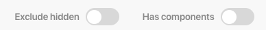 Также можно отобразить в списке или скрыть скрытые асины (Exclude hidden), а также можно отфильтровать по наличию в асине состава (Has components).&#x20;