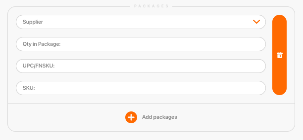 Чтобы добавить нового поставщика к товару или новый вариант упаковки, нажмите на "Add packages".