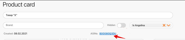 Как добавить к товару поставщика асин?